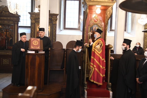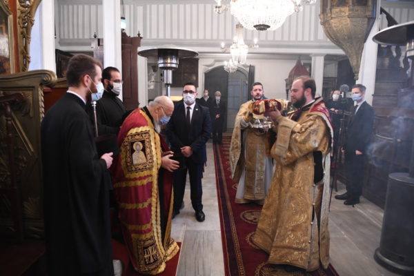 Προηγουμένως, τον Πατριάρχη προσφώνησαν ο Θεοφιλ. Επίσκοπος Αλικαρνασσού και ο Εντιμολ. κ. Μάριος Ηλιάδης, Άρχων Ευταξίας της Αγίας του Χριστού Μεγάλης Εκκλησίας, εκ μέρους της Εκκλησιαστικής Επιτροπής της Κοινότητας.